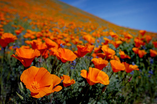 In the accompanying engraving the artist has endeavored to give us a limited view of some of these wonders. In the distance are seen the lofty mountains, rearing their snow-capped summits thousands of feet above the level of the sea. A little nearer appears a waterfall, dashing and plunging down the side of the mountain ; and in the valley we see a beautiful stream dancing merrily along, making music in the solitude. In the foreground of the picture are represented a few of the flowers and luscious fruits which grow in such profusion in the "Golden State." The wild flowers of California are varied and beautiful, vying in loveliness with the treasures of the florist. In spring and early summer, fields and even mountain sides present for miles the appearance of one vast garden. Cultivated flowers also, roses, oleanders, geraniums, and many other choice varieties, here attain unusual size and perfection, and in many places bloom throughout the year.