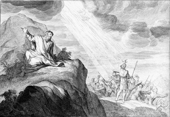 Then Ahaziah sent a captain with fifty men to take Elijah; but the captain spoke roughly to the prophet, and the Lord sent fire from heaven and destroyed both him and his men. A second captain and his fifty, sent out by the king, met the same fate; but the third captain kneeled before Elijah, and begged that his life might be spared; so the man of God went with him to the king.