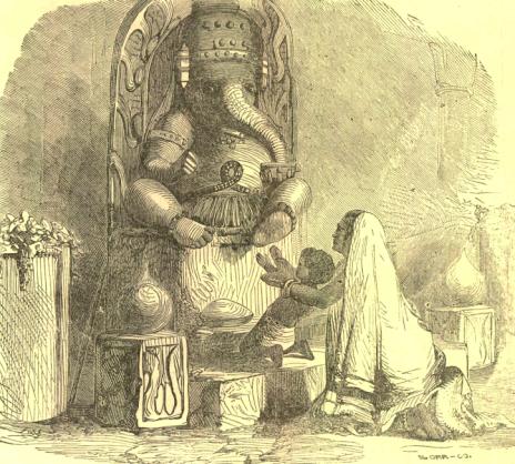The artist gives us on this page of our little paper, a picture of one of these idols; and what a sad picture it is a poor Hindoo mother teaching her child to pray, and to pray to such a hideous monster. Do you suppose that she is repeating our beautiful prayer, "Our Father who art in Heaven, hallowed be thy name?" No; oh, no! Poor woman! She has never learned that we have a Father in Heaven to whom we should pray. She has never been told how much he loves us; so much that he gave his own dear Son to die for us. But instead, she has been taught that she must worship this image. No wonder the little child starts back and is afraid. He may well be frightened by such a monster. Could you love such a god as this? You could not imagine that such a being could love you and say," Suffer little children to come unto me, and forbid them not, for of such is the kingdom of Heaven."