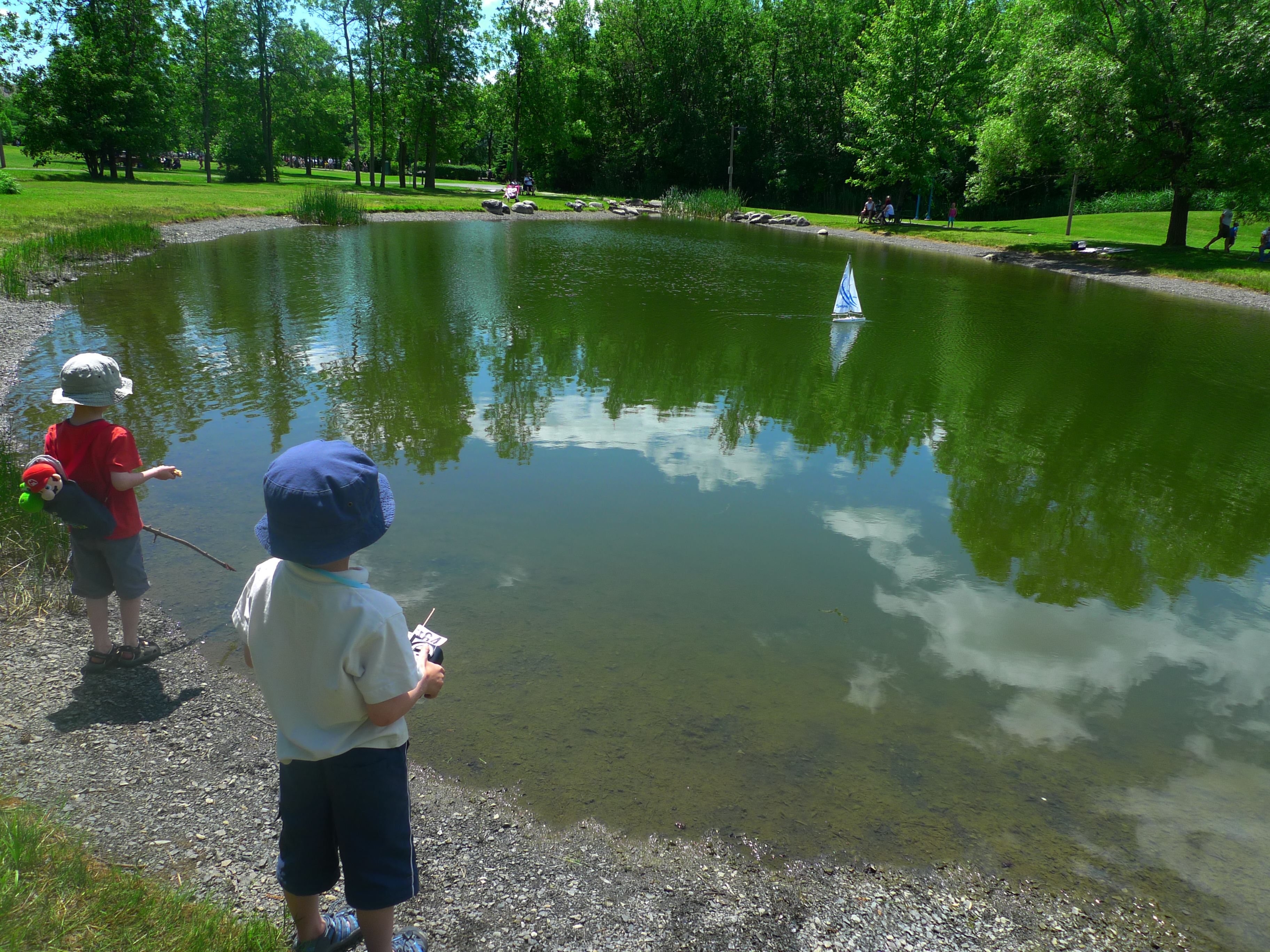The boat had sailed a long way out into the pond, and the big boy said,"Go in, Jim, and get her. It isn't over your ankles, and I've been in after her every time."