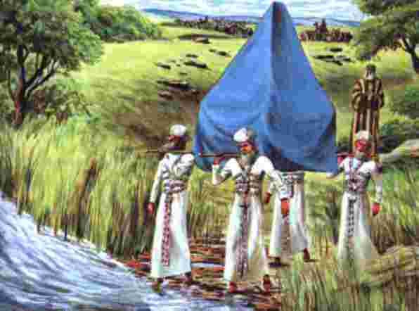 After the death of Moses, Joshua took command of the armies of Israel. The Lord encouraged him by many promises and wonderful miracles. As he had before instructed Moses, so he now instructed Joshua. He told him to give command to the people to cross the Jordan; and when the feet of the priests who bore the ark touched the waters of the river, the waters parted, as did the waters of the Red Sea forty years before, and let the people pass through on dry land. As a memorial of this great miracle, twelve stones were taken out of the bed of the river, and set up at Gilgal, and twelve other stones were set up in the bed of the river.