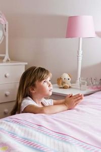 arrayed for bed, with hands clasped, repeating