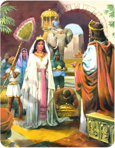 THE fame of Solomon spread to all the nations round about; and when the queen of Sheba heard of his wisdom, she came to prove him with hard questions. "And she came to Jerusalem with a very great train, with camels that bare spices, and very much gold, and precious stones; and when she was come to Solomon, she communed with him of all that was in her heart.