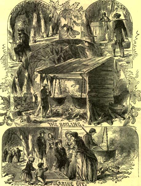 The last and perhaps most interesting process is "sugaring-off." The syrup, which has now settled clear, is put into a clean kettle or pan, and boiled until it becomes sugar.