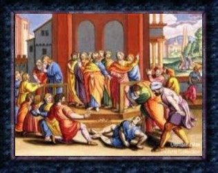 Ananias could not deny his deception, nor offer an excuse, but was so overcome with a sense of his guilt that he fell dead upon the floor. His wife, not knowing what had happened, came in shortly after, and was asked by Peter if they had sold the land for so much, and how it was that they had agreed together to tempt the Spirit of the Lord. The words of Peter struck a deep sense of shame and guilt to her heart, and she also sunk down upon the floor and yielded up the ghost.