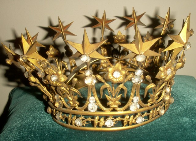 These casements I saw were filled with crowns of surpassing beauty, they being made of pure gold. They were all wrought after the same pattern, and seemingly fashioned by the hand. They all presented the same appearance, unsullied and without blemish. Each crown was illuminated with one or more stars, which shone with transcending brightness. These stars appeared to be inlaid, and shining as it were through transparent glass. The glittering gems were of the same size and shone with the same brilliancy. The crowns differed only in the number of the stars, which they contained, some crowns containing more than others, and so shone more brilliantly. Each star seemed to be a gem, flashing and sparkling with inexpressible brightness.