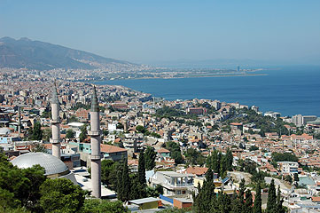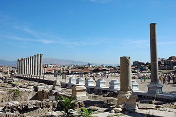 The city was destroyed by an earth-quake in A. D. 177, but being rebuilt by the Emperor Marcus Aurelius, it once more became a very populous town. On the hill southeast of the city, as shown in the background of the picture, are some remnants of the massive walls, and fragments of the early magnificent buildings. There is also pointed out the site of the stadium, or ancient theater, in which Polycarp is said to have suffered martyrdom.